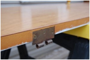 The first step to creating your do-it-yourself desk is to remove the hardware from the door. Or, simply leave the hinges on the door for a unique-looking desk. The screws on the door handle may be placed in several different configurations, so determine which tool is needed, and always use the best tool for the job. The resulting hole can be used for wire management.